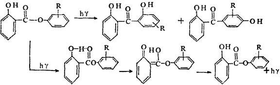 水杨酸酯类是应用最早的一类紫外线吸收剂,最初多用于纤维素塑料。它可以吸收紫外光,通过形成烯醇式互变异构体将能量消除。只是这类稳定剂本身吸收紫外光的能力很低,而且吸收的波长范围较窄(小于340纳米)。但在吸收了一定光能后,水杨酸酯类可发生分子重排,形成吸收紫外线能力强的二苯甲酮结构,从而产生较强的光稳定效果。因此这类稳定剂又被称为先驱型紫外线吸收剂。