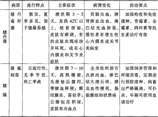 附表5 羊快疫、肠毒血症、猝疽、黑疫、炭疽、羊链球菌病的鉴别要点