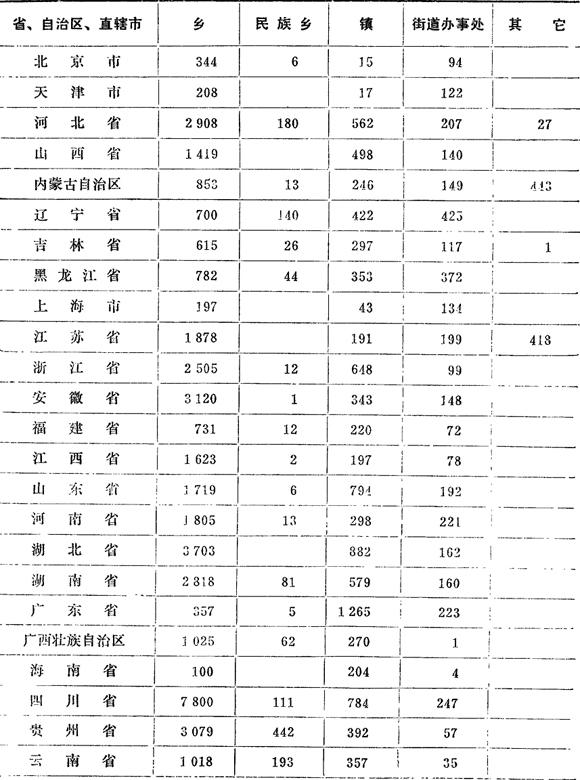注:其它项为苏木、特区、农场、牧场、林场、水库、圃、园、所、站、队、县辖市、区等。