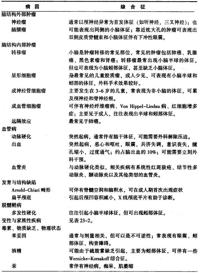 表23-2 伴有小脑体征的家族性和遗传性疾病