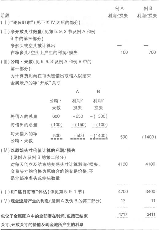 | 释义 | 关于风险以及利润或损失的小结 下例的图表表明了在5.10部分的例A和5.12部分的例B中,即市场处于期货升水或期货贴水时的利润或损失。它将两种情况作了对比,并强调了市场账户中所包含的利润或损失因素是如何会发生变化的。 例