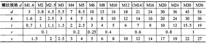 表3-26 内六角圆柱头螺钉(GB70—85)(mm)
