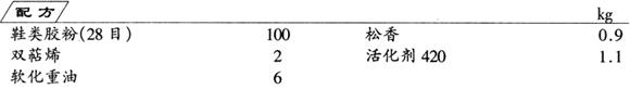按配比将软化重油和双萜烯加入胶粉中,充分搅拌,混合均匀,再加入其余组分,在搅拌罐中,30~50℃下,搅拌混合,送入再生罐中再生。再生条件:0.7MPa×5h,便可制成再生胶。