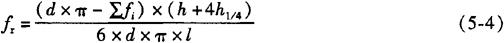 式中 K=3或2(三面或二面有肋); FR——一个肋的纵向截面积; β——横肋与钢筋轴线的夹角; d——钢筋公称直径; l——横肋间距。 已知钢筋的几何参数,相对肋面积也可用下面的近似式(5-4)计算。