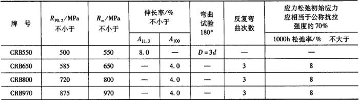 (2)力学性能和工艺性能 1)钢筋的力学性能和工艺性能应符合表5-31的规定。当进行弯曲试验时,受弯曲部位表面不得产生裂纹。反复弯曲试验的弯曲半径应符合表5-32的规定。 表5-31 冷轧带肋钢筋力学性能和工艺性能