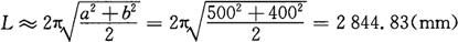 式中 L——椭圆周长; a——椭圆长半轴; b——椭圆短半轴。 仍以上述椭圆为例,计算其椭圆周长: