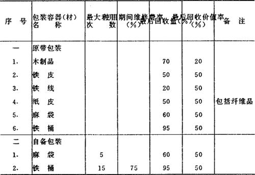 ③包装容器的回收量、回收价值、周转使用次数和使用期间维修费,按表3-4的标准计算。