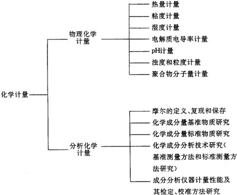 | 释义 | 化学计量的内容和分类 化学计量是研究化学测量溯源性的一门学科,是研究化学测量领域内计量单位的统一和测量量值准确可靠的一个计量学分支。 根据被测参量的特性,化学计量可分为物理化学计量和分析化学计量两部分。物理化学计量着重研究与物质的物理性质和物理化学性质有关的特性量的计量问题。主要内容有:研究特性参量的计量单位,建立计量基准、标准,发展物理化学特性标准物质,研究精密测量方法等。分析化学计量着重研究与物质组成有关的化学成分量计量问题。主要内容有:摩尔的定义、复现和保存(阿佛加德罗常数和原子量的精确测量等),研究化学成分标准物质,研究精密分析测量技术,分析仪器的计量性能及其检定校准等。 表12.1-1 列出化学计量的内容和分类。 表12.1-1 化学计量的内容和分类