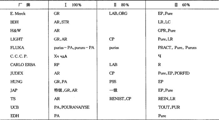 这两份价目表只是从商业角度把厂牌、规格作了一般性的分级,它并不代表所有化学试剂产品的规格和质量,真正能评价各种试剂质量优劣的是千万个使用试剂的科技人员。使用某厂家,某规格的试剂得出的某种实验结果,采用另一厂家或另一规格的同名试剂就得不出重复实验的结果,这种情况在实践中不止一次出现过。出现这种情况后,往往不能用简单的理由解释清楚。试剂中某种杂质的含量对不同实验的影响有时是很微妙的,不易发现。很多科技人员在发表文献时常常特别指明其关键试剂的厂牌、规格,甚至批号。