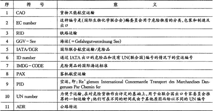 表9-4 运输规则中的有关符号