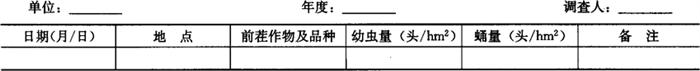 1.4 大田普查 1.4.1 越冬虫源基数普查 1.4.1.1 调查时间 在秋、冬季蔬菜收获后。 1.4.1.2 调查方法 选择当地有代表性的十字花科蔬菜不同类型田各1块。在地块的向阳处,采取对角线5点取样法。每块田或田边杂草地选5点,每点调查1m2内残株落叶或杂草上的幼虫和蛹的数量,换算成hm2数量。记入表6-64。 表6-64 小菜蛾越冬情况调查表
