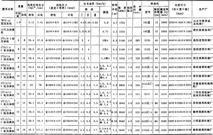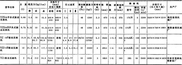 表2-8-53 光轮静作用压实机性能表