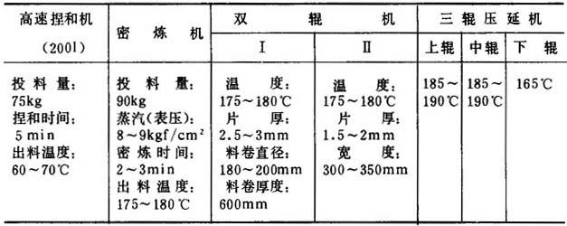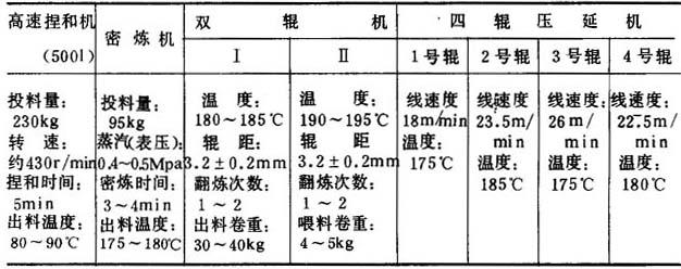 表6-3-3 四辊压延聚氯乙烯硬片的工艺条件举例