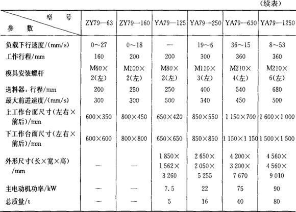 3.全自动粉末成型机械式压机主要技术参数(表6.2-28) 表6.2-28 粉末成型机械式压机技术性能数据