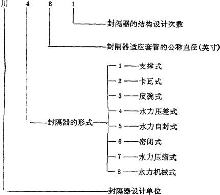 | 释义 | 压裂专用设备及工器具 (一)压裂车、水泥车 见第二章第七节固井器材与设备 (二)封隔器 封隔器统一编号说明: