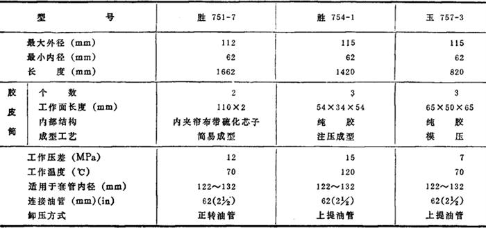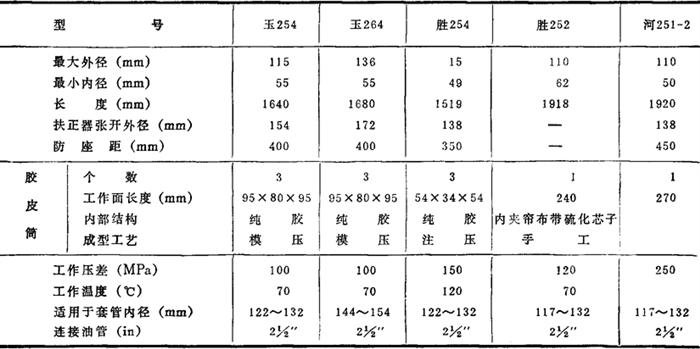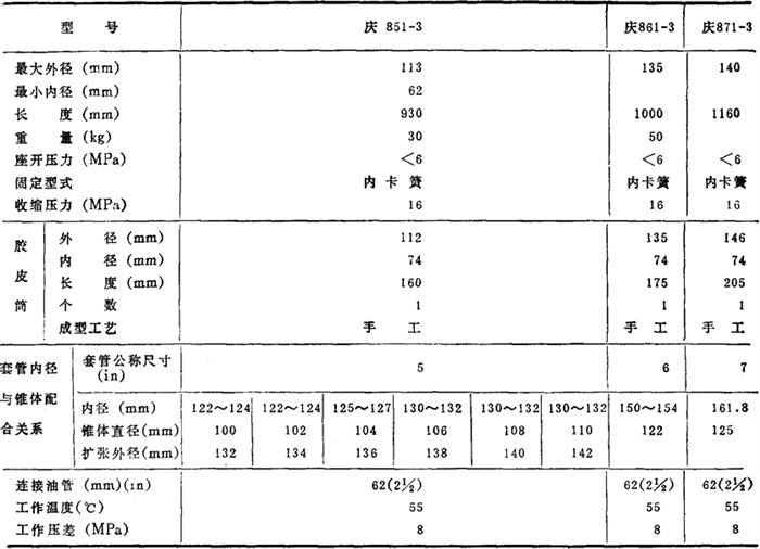 1.支撑式封隔器 优点:结构简单,制造方便,密封可靠。 缺点:尾管过长时,耐高压性能差。一般60.2mm( 用途:找水、堵水、试油、采油等分层作业及压裂酸化工程。 技术规范见表3-3-35。 表3-3-35 支撑式封隔器技术规范