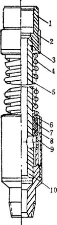 图3-3-61 高压定压凡尔 1-上接头 2-调节螺母 3-压板 4-弹簧 5-中心管 6-护套 7-密封圈 8-凡尔 9-凡尔座 10-凡尔座接头 表3-3-46 高压定压凡尔技术规范