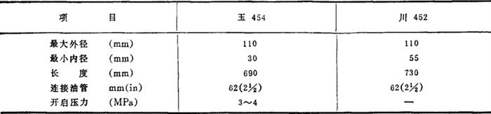 8.水力机械式封隔器 优点:结构比较简单;不要清理井底; 缺点:对套管变形的井,特别是密封段套管变形不宜采用;卸压比较困难。 用途:分层开采。 技术规范见表3-3-44、表3-3-45。 表3-3-44 水力机械式封隔器技术规范