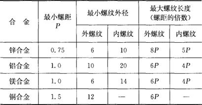 7.螺纹 压铸出的螺纹牙形应成平头或圆头,可压铸的螺纹尺寸见表3.2-7。 表3.2-7 可压铸的螺纹尺寸 (mm)