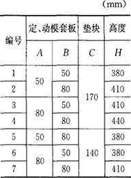 | 释义 | 压铸模标准模架 图8.3-1为上海申都仪表零件厂生产的压铸模标准模架。表8.3-1和图8.3-2分别为模架与压铸机选用参考表。