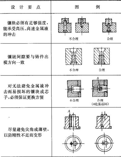 (五)镶块与芯子结构设计要点(表3.3-5)