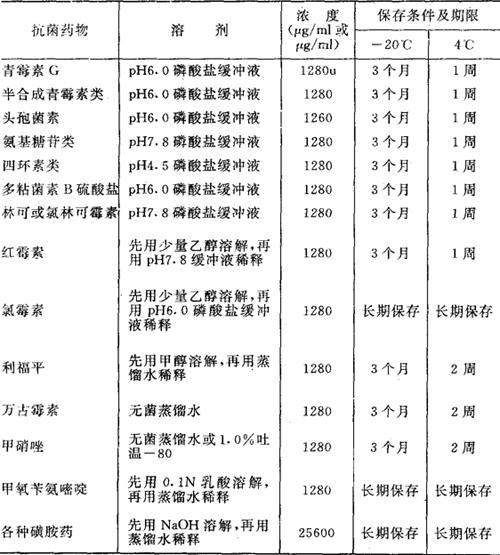 (2)抗生素稀释一般采用对倍稀释法,稀释范围确定可由表2-6资料提供参考。 表2-6 抗生素选择稀释浓度参考表常选择稀释浓度(μg/ml)
