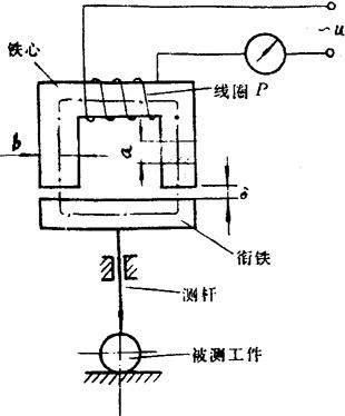| 释义 | 参量放大法 参量放大法是将被测量微小的变化转换并放大为电学参量(如:电感、电容、电压、电流等)、光强分布(如干涉、衍射等)或其它物理量的变化,以便于细分和测量。根据微小量的变化转换成各种参量的工作原理不同,常用的参量放大技术可分为电感式、电容式、气动式、光电式等。 1.电感式参量放大 电感参量放大是将被测量的位移转换放大成电感量的变化,再经电路放大以电压信号给出。如图3.3-9所示的是电感传感器的原理图。当工件变化引起空气隙δ改变时,线圈中的电感值L发生变化: