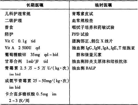 说明:1.幼婴提倡母乳喂养,注意护理;年长儿宜加强体格锻炼。 2.改善生活环境,减少污染,尤其是密切注意吸烟对小儿的不良影响。 3.尽早发现和治疗营养不良、佝偻病、贫血等并发症。 4.切勿滥用抗生素,尤其是广谱抗生素,宜针对病原菌选用适宜药物。 5.卡介苗多糖核酸的疗程为12周。 |