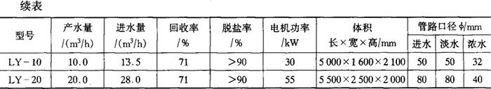 (三)反渗透器规格 反渗透器没有统一的规格型号,表4-12-8列出反渗透器规格及主要技术参数。 表4-12-8 反渗透器规格及主要技术参数