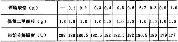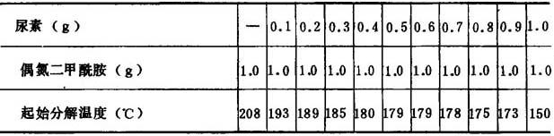 表2-5-6 尿素对偶氮二甲酰胺起始分解温度的影响