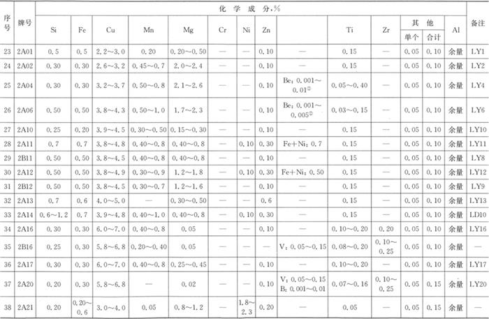 注:①用于电焊条和焊带、焊丝时,铍含量不大于0.0008%。