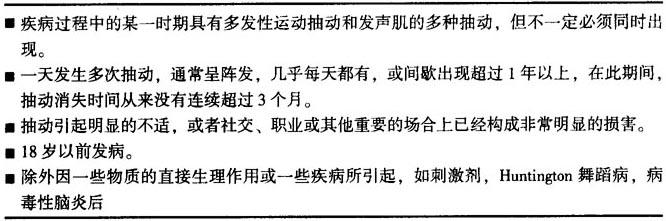 表26-2 Tourette多动障碍性疾病的诊断标准