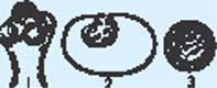 有钩绦虫 1.头节 2.囊尾蚴 3.虫卵 |