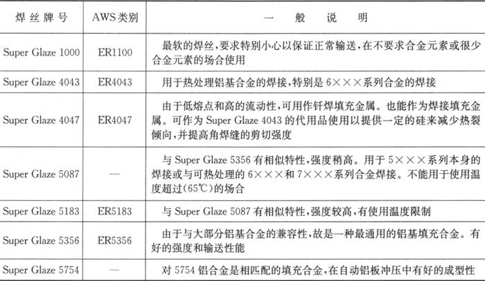 表9.3-10 美国Lincoln Electric公司的铝合金焊丝