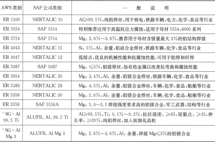 3.SAF-OERLIKON公司 法国SAFOERLKON公司生产的铝合金焊丝见表9.3-11。