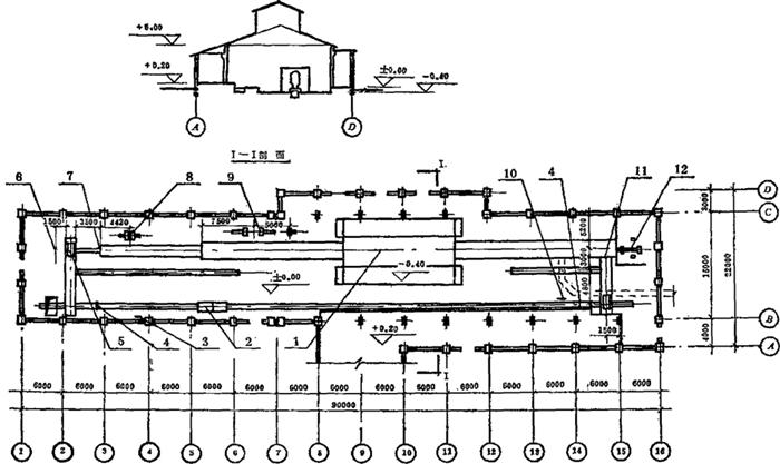 图7-5 某厂石膏模型车间工艺布置平、剖面图