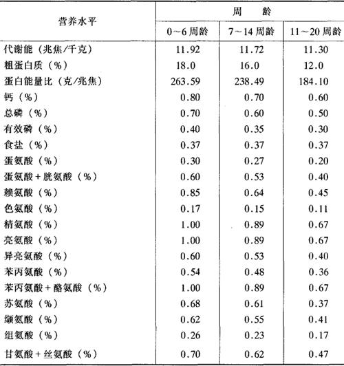 1.生长期蛋用鸡的饲养标准(表5-11)