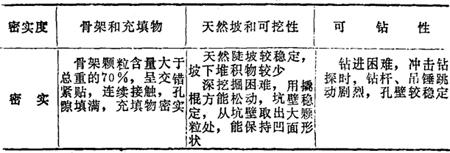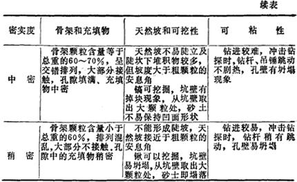 注:在观察颗粒粗细进行分类时,应将鉴别的土样从表中颗粒最粗类别逐级查对,当首先符合某一类土的条件时,即按该类土定名。 2.碎石类土密实度的野外鉴别方法(表17-88) 表17-88 碎石类土密实度的野外鉴别方法
