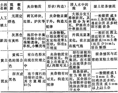 5.人工填土、淤泥、黄土、泥炭的野外鉴别方法(表17-91) 表17-91 人工填土、淤泥、黄土、泥炭的野外鉴别方法