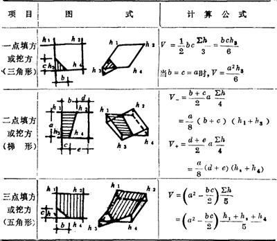 (四)土方工程量的计算 土方工程量的计算方法有方格网法和横截面法。 1.常用方格网点计算公式(表17-95) 表17-95 方格网点计算公式