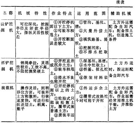 (六)一般常用土方机械的特性和适用范围(表17-101) 表17-101 常用土方机械特性、适用范围