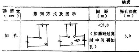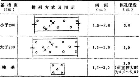 注:对于较软弱的新近沉积粘性土和人工杂填土的地基,钎孔间矩应不大于1.5m。 表17-107 探孔布置