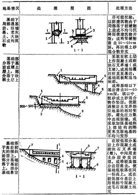 (3)局部软硬(高差)地基的处理见表17-110。 表17-110 局部软硬、高差地基的处理