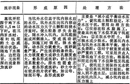 (5)流砂的处理、流砂现象、形成原因见表17-112。 表17-112 流砂的处理