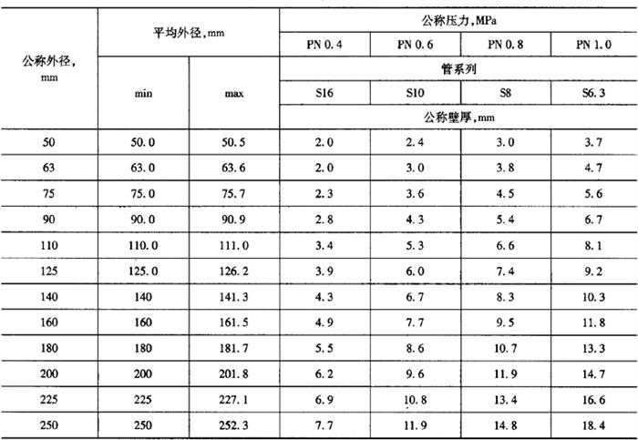 4.管材的规格尺寸与公称压力的关系(表7-91) 表7-91 埋地给水用聚丙烯管材的规格尺寸与公称压力