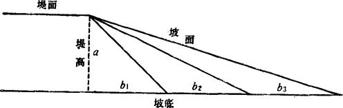 图1-1 坡比 坡比 a∶b1=1∶1 a∶b1+b2=1∶2 a∶b1+b2+b3=1∶3 |