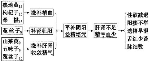 1.五子衍宗丸(《医学入门》):由枸杞子、菟丝子、五味子、覆盆子、车前子组成。功能填精补髓,疏利肾气。主治肾虚遗精,阳痿早泄,久不生育,须发早白等。