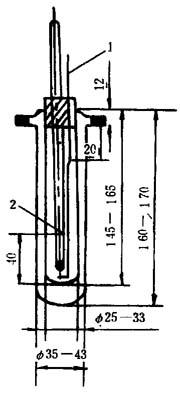 图10-2-9 茹可夫瓶 ②干燥试管:高70±3mm,内径20±2mm。 ③套管:高85±5mm,内径40±4mm。 ④温度计:分度值为0.2℃(见图10-2-10)。