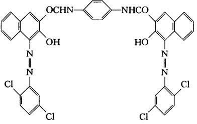 制法 由2,5-二氯苯胺经重氮化后与2,3-酸偶合,所得产物经酸化和用氯化亚砜酰氯化后,与对苯二胺缩合而得。