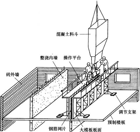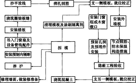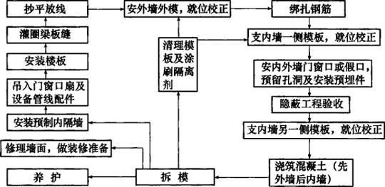 图9-21 预制非承重外墙板及内墙采用现浇的施工程序